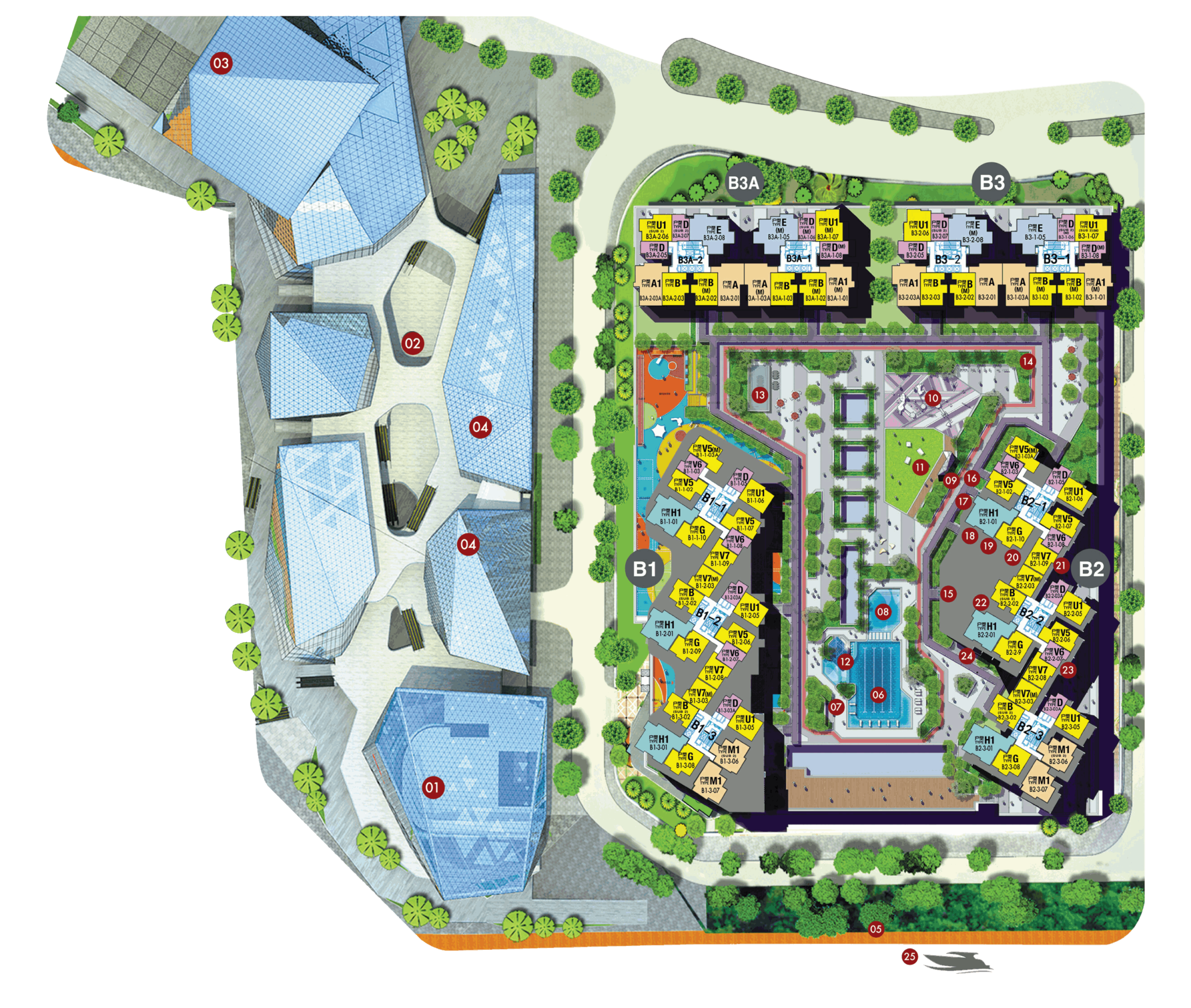 Spanning over 4,500 sqm indoors and 20,000 sqm outdoors, this clubhouse features a pool, sports facilities, and recreational areas, promoting health and leisure.